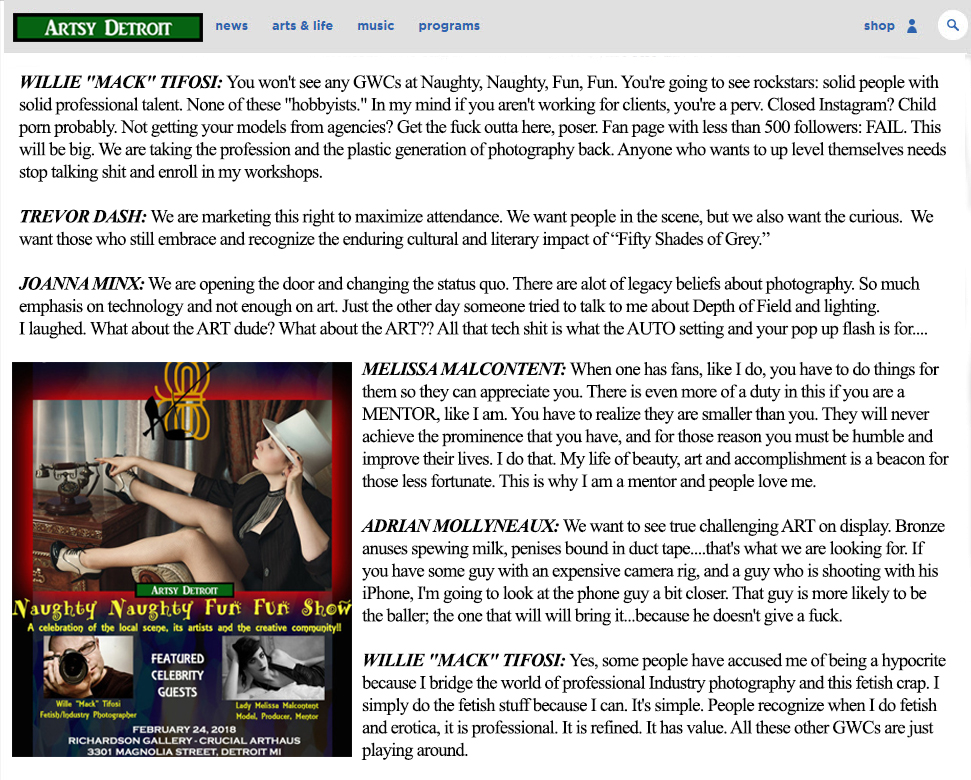 The "Naughty Naughty Fun Fun" show was borne out of equals parts sarcasm, satire, and commentary with a sprinkle of anger.